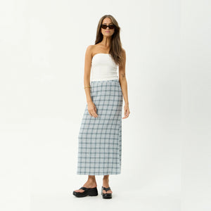 AFENDS LAGOON SEERSUCKER MAXI SKIRT - OVERCAST CHECK